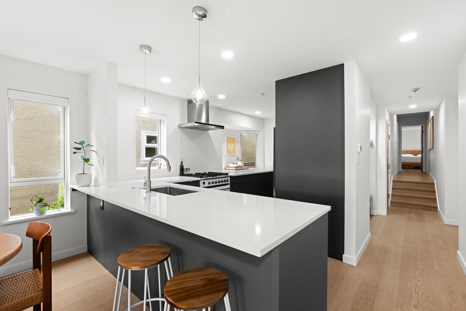 Stunning N/E Corner Unit in Kits! Bright, stylish, & beautifully updated, this coveted corner home blends elevated design with effortless comfort and function. Oak hardwood & tile flooring set the tone, while the chef-inspired kitchen shines with Silestone counters and premium appliances. Thoughtful layout offers ideal separation between living & private spaces, perfect for both entertaining & unwinding. Enjoy natural light throughout, a charming corridor water view, & ultimate privacy with only 2 suites per floor. Well-maintained, pet-friendly building with a strong sense of community, shared storage, & 2 side-by-side parking stalls. Incredible walkability, steps to W.4th shops, cafes, dining, and the beach. A rare find in one of Kitsilano’s most sought-after locations! OH Thurs 5-6pm